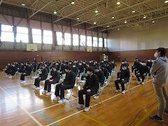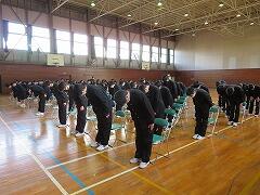 公立入試を終えた3年生は、本日より卒業式に向けた式練習を始めました。初日は主に式の流れの確認と礼法について確認しました。