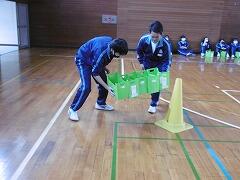 バトンの代わりに3年間、自分達が使ってきたBOXを2人で押さえながら走ります。