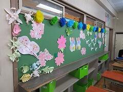 3学年の先生方の似顔絵と合わせて、2年生から3年生へ向けたメッセージ(花びら)が掲示されていました。