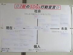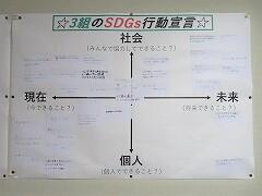 2030年といえば、中学生のみんなが働きに出た頃で、決して遠い未来の話ではありませんね。これからの社会を持続可能でよりよいものとするため、みんなならどんな取り組みができるか、3年生には「行動宣言」をしてもらいました!