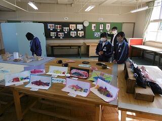柏市特別支援学級合同作品展の中止連絡を受けて、ゆりの木学級としては今日から3日間昼休みに、風早中学校独自で展示を行う運びとなりました。