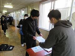 本日、3年生は私立高校入試に向けた事前指導を行い、入試の流れや朝の時間を確認しました。