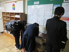 教室では担任の先生が入口で待っています。なお、この時点で発熱や体調不良が見られる場合は、保健室で再検温し、状態によっては下校させますので、ご理解・ご協力の程よろしくお願いします。