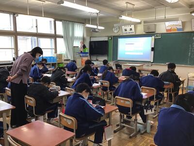 校外学習を終えた1年生は,今日の6時間目に,振り返りと一人一台端末を用いて個人新聞を作成しました。
