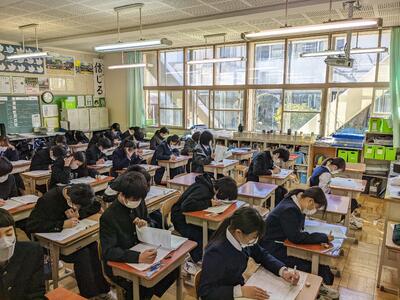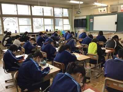 本日3年生は、今学期最後の実力テストに臨みました。これまでの結果を鑑みて、自分自身で最終進路を決定していきます。結果は2週間後を予定しています。三者面談を終えて、今一度進路について、家庭で話し合いの場を設けてみてください。