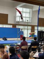 体操競技独特の緊張感のある静けさの中、見事県大会の舞台で迫力のある演技を見せてくれました!