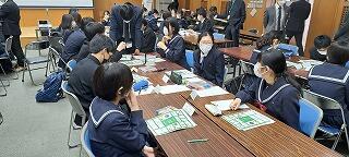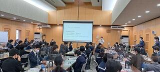 風早中学校からは生徒会の2名が参加し、事例をもとに他の学校の代表生徒と「いじり」と「いじめ」の境目はどこなのか意見交換をしました。