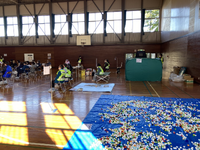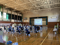11月6日(日)、塚崎区地域一切防災訓練が、風早中学校体育館にて行われました。数名の生徒の姿もありました。