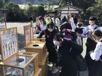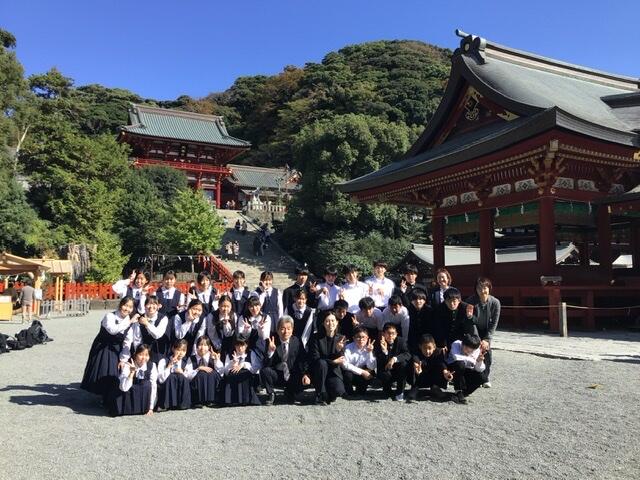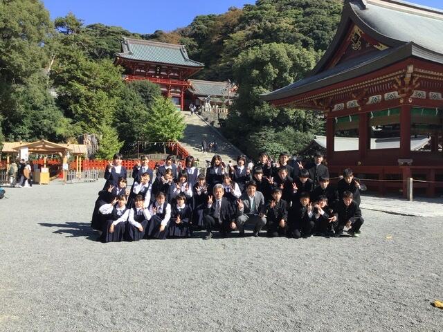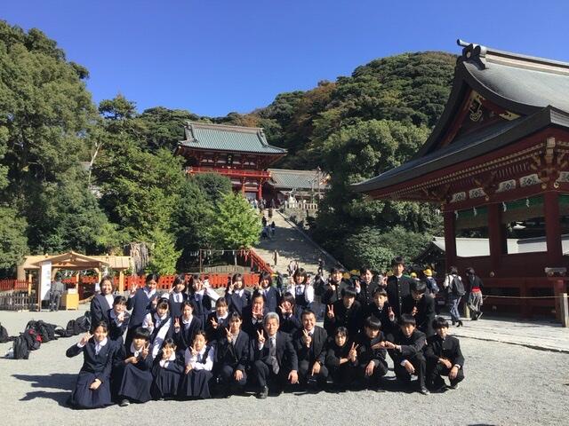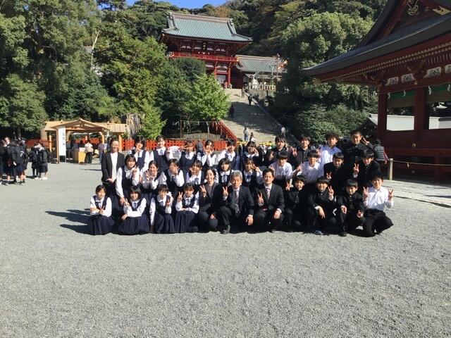 渋滞により予定から15分遅れで鎌倉に到着し、鶴岡八幡宮で各クラス集合写真を撮りました!