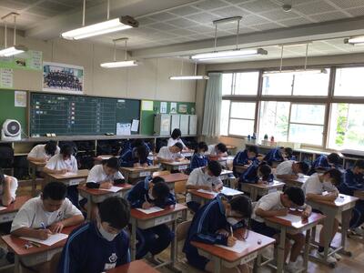 本日一斉テストの実施がありました。写真は1年生のテスト中の様子です。