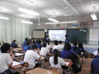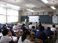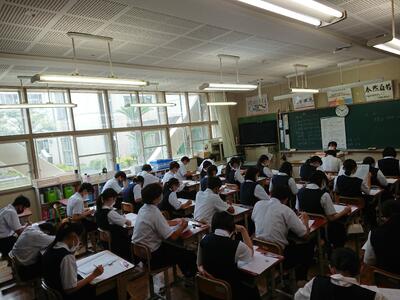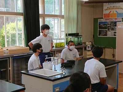 理科の生物の分類について、班ごとに調べた事を発表をしました。これまでの授業で学んだ分類には当てはまらない、変わった特徴を持つ動物が多く登場し、驚きの声を上げつつも学習に取り組んでいました。