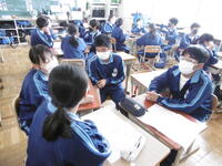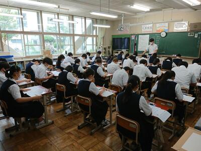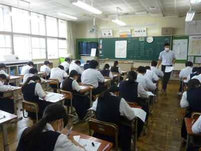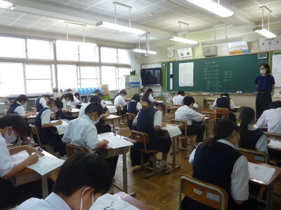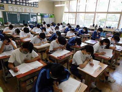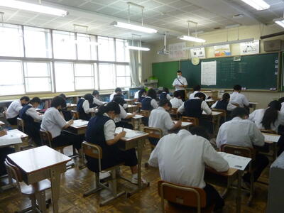 初めての試験ということで緊張している生徒も多くいましたが,友達同士で問題を出し合ったり,会話をしたりして緊張をほぐしている様子が見られました。