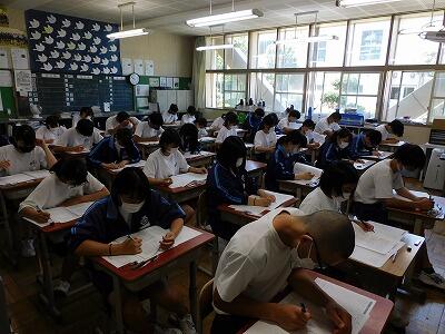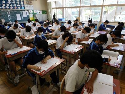 試験1日目は理科,英語,国語の3教科を行いました。試験中の態度は皆,真剣で最後まで一生懸命問題に向かう生徒が多くいました。