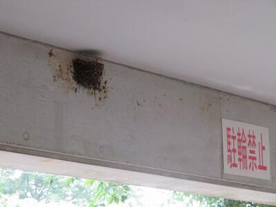 今年は例年に比べ多いような気がします。駐輪場の天井には何と五つもの巣ができています。