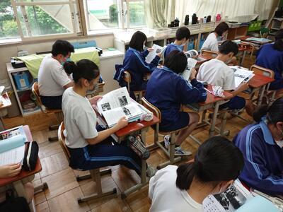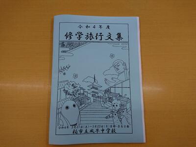 本日、完成した修学旅行文集を全クラスで配布しました。今年度は、一人一台端末を活用して、班ごとに思い出を振り返り、一冊の文集にしました。