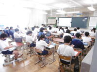 学習面では夏休みの学習ノートについての説明がありました。夏休み明けの実力テストは学校での定期テストと違い範囲が広く、多くの県内中学生が受けるため、今後の進路の指針を考える上でも重要です。早いうちに「毎日学習に取り組む」ということを習慣化させていきましょう。