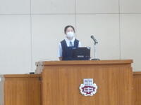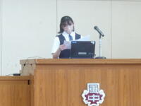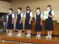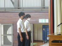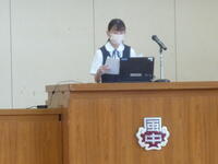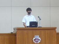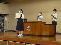 終業式では各学年、生徒会の代表より1学期の反省と2学期に向けた改善点について話がありました。どの学年も、自分達の生活を振り返り、課題を見出しているようです。どの生徒も、リモートという状況ながら、堂々と話していました。