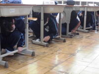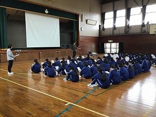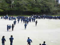 今回は,地震からの火災という想定で,訓練を実施しました。避難経路や避難時の4原則(おさない,素早く,しゃべらない,戻らない)を確認しました。2,3年生はもちろんですが,入学したばかりの1年生もしっかりと行動することができました。実際は,震度5強以上の場合には引き渡しでの下校となります。