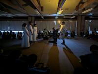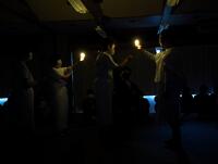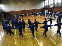 今日の総合の時間には、キャンプファイヤー、フォークダンス、整列隊形、点呼などの練習を体育館で行いました。
