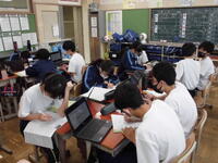 1年生はキャリア教育の一環として職業調べを行っています。2年生と3年生は,それぞれ間近にせまった林間学校と修学旅行に向けてしおりをもとに最終確認を行っています。