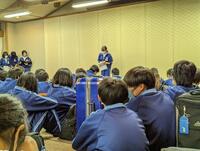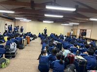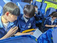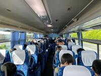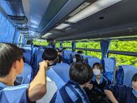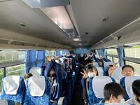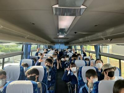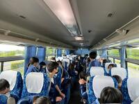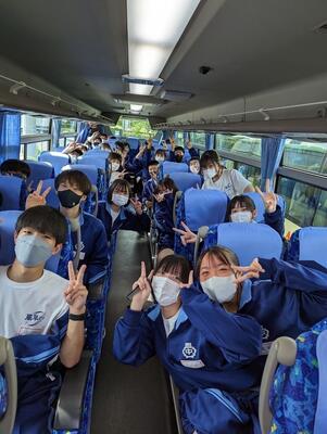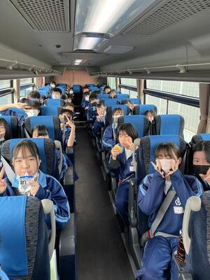 体育館での出発式を終え、参加者全員バスに乗り、無事風早中学校を出発しました。