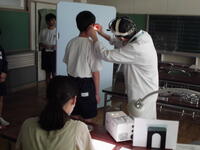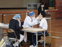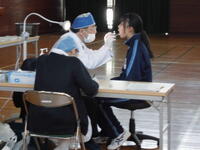 1,3年生と2年生の希望者を対象に,右耳→左耳→鼻→喉の順に検査していただきました。健診の結果は,後日ご家庭にお知らせします。治療勧告等が届きましたら,早めの受診をお願いします。