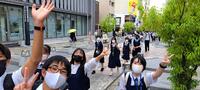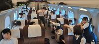一昨日からの雨が嘘のように晴れ、爽やかに修学旅行のスタートを切ることができました。
