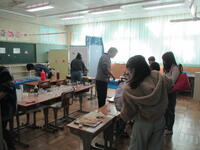 さて、午後は保護者の方が準備してくださった「風北まつり」です。まずは、体育館での読み聞かせです。