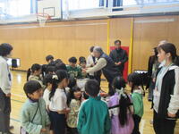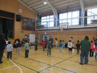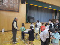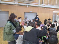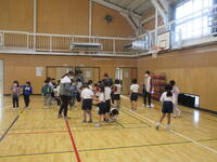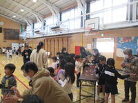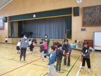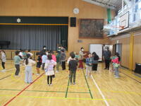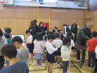 今日は、地域の方が来校してくださり、1年生に昔遊びを教えてくださいました。