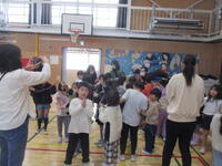 「お手玉」1年生にとって、お手玉2個はなかなか難しかったようです。しかし、だんだん慣れてきて、器用に2個でお手玉をしていました。