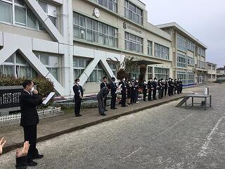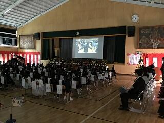 今年度で退職、異動をする職員とのお別れの式が行われました。今年度は、19名の教職員が風早北部小学校を去ります。