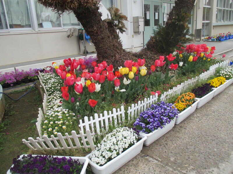 本校には、たくさんの花々が咲いており、文字通りたいへん華やかです。