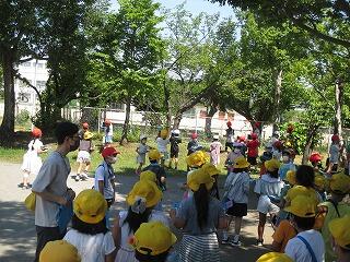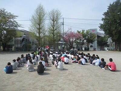 時折、小雨が降る生憎の天気でしたが、着任した職員は子どもたちと対面することができました。