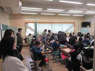 上級生の皆さんの教室では、自分たちが登場する場面を見て、笑い声が上がっていました。