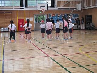 2月の全校朝礼が行われました。とても寒い中でしたが、4~6年生が体育館で、1~3年生が教室でリモートで参加しました。