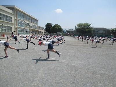 今日から、運動会の学年練習が始まりました。まずは、学年全体で行う表現活動です。今日は天気も良く、暑くなりましたが、元気に取り組みました。新型コロナウィルスの影響で、以前のような盛大な運動会はできないかもしれませんが、素晴らしい発表ができるよう頑張ります。