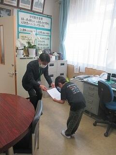 緊張した様子でしたが、返事や受け取る姿勢が大変素晴らしく、やる気が感じられました。リーダーシップを発揮して、頑張ってください!
