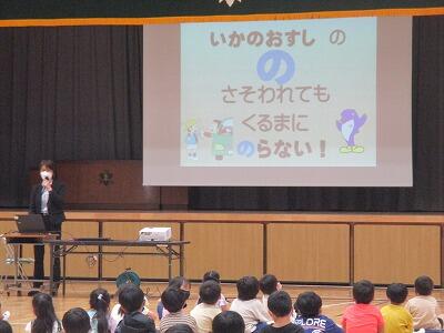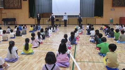 今日は、1年生児童対象に「防犯教室」が行われました。普段、移動交番などで柏市の児童生徒を見守ってくださっている、柏警察の方と相談員の方に来校していただきました。