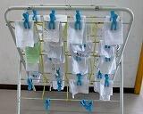 廊下に置かれている雑巾がけに、雑巾がきれいにかけられています。