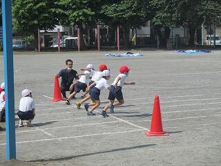 体育の授業で、徒競走の練習をしました。みんな、なかなか速かったです。