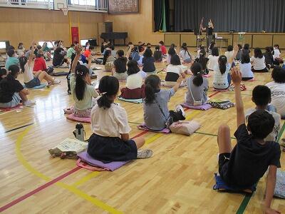 3年生と4年生が、学年全体で表現運動の練習を行いました。みんな、心を一つにして表現できるように頑張っています。