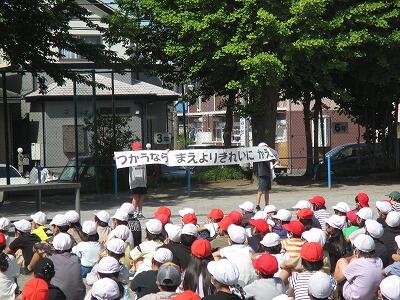 防犯ブザーについても教えていただきました。いざという時に、すぐに手が届く場所につけるのが正しいつけ方とのお話でした。また、故障したり電池が切れていたりすることがあるので、定期的に作動させて確認することが必要であるということもおっしゃっていました。