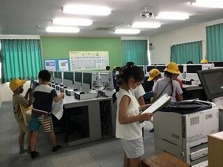 お兄さんお姉さんたちが紹介してくれる、学校内の様子を説明した動画を、1年生は熱心に見ていました。