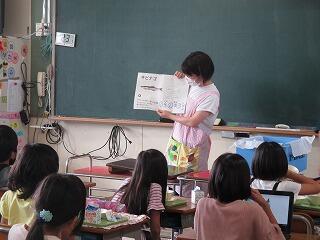 授業の終わりにはお土産をいただきました。大野先生の版画ハガキです。職員室前の廊下に、以前いただいた大野先生の猫の版画の作品が飾られているので、子供たちからは「あ、この猫知っている!」などの声が聞かれました。大野先生、今日は本当にありがとうございました。