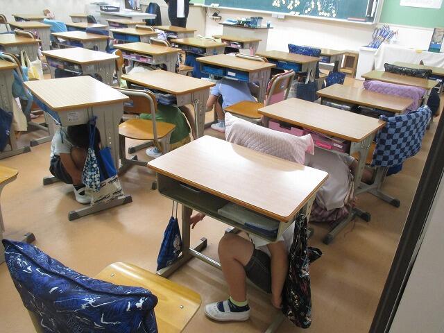 まず、第1次避難として机の下に身を隠して自分の身を守ります。
