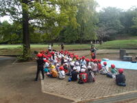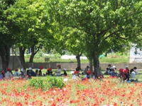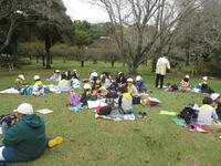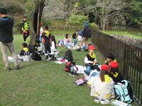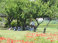 そのあとは歩いてあけぼの山公園へ。お待ちかねのお弁当です。各クラス、木陰を見つけてお弁当を食べました。