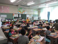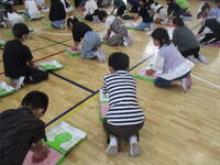 昼休みは「スマイルタイム」です。1年生と6年生は体育館で、2年生と4年生は校庭で、3年生と5年生は3年生の教室で、それぞれ行いました。今回は、下の学年が企画しました。