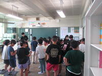 その範囲は、体育館・教室・校庭と幅広いです。子供たちは、興味津々で活動を見学していました。