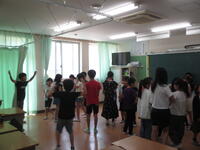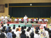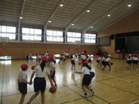 今日の2時間目、体育館をのぞくと1年生が練習をしていました。