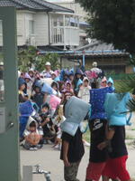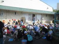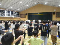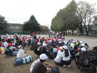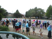 まずは体育館前で出発の会。実行委員を中心に進めました。